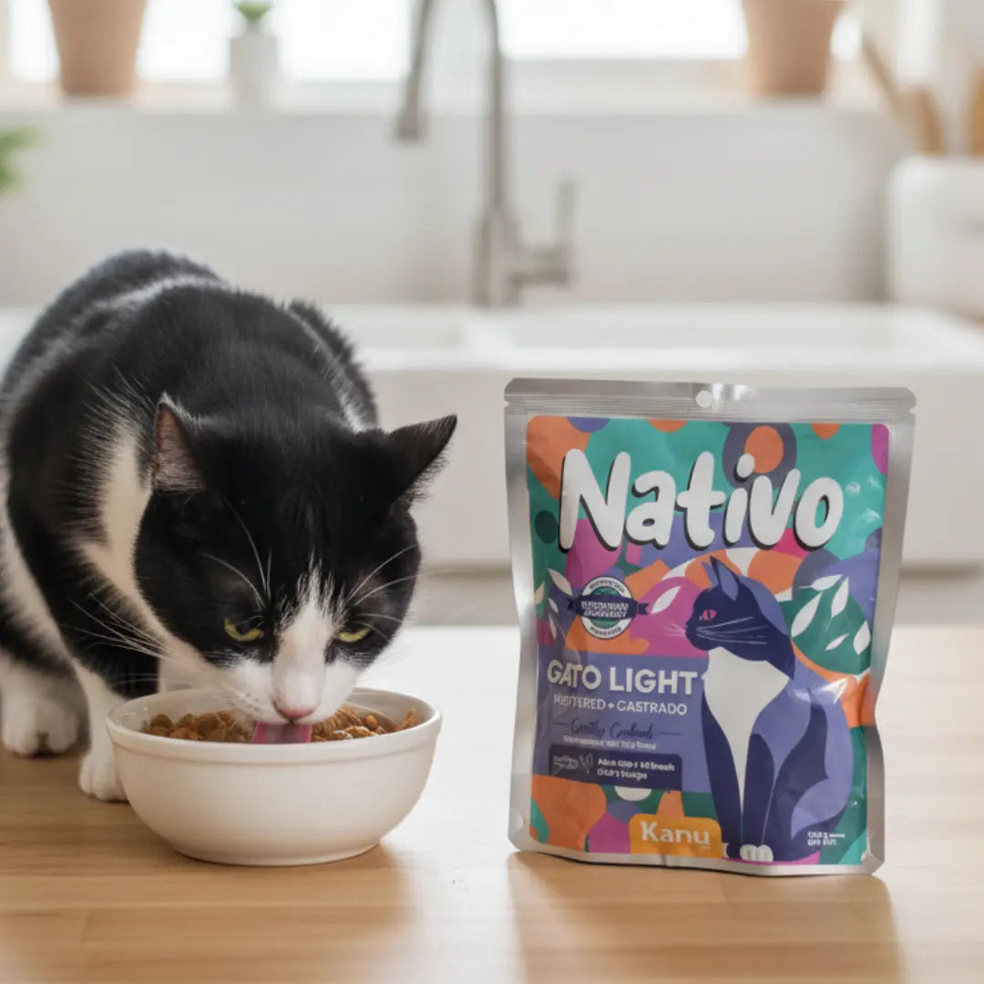 El Alimento Húmedo Nativo Light Chef’s Recipe Kanu Pet para Gatos está diseñado especialmente para felinos esterilizados o con tendencia al sobrepeso que necesitan una nutrición balanceada sin perder sabor. Formulado con pollo (36%) y tilapia (21%), fuentes magras de proteínas altamente digestibles, ayuda a mantener la masa muscular y controlar el peso de forma segura.