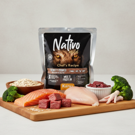 El Alimento Húmedo Nativo Wild Chef’s Recipe Multi Protein Kanu Pet para Perros es una receta ultra premium elaborada con proteínas reales y naturales, inspirada en la nutrición ancestral canina. Contiene tilapia (30%), trucha (20%) y pollo (15%), tres fuentes de proteína magra altamente digestible que favorecen energía, vitalidad y el mantenimiento de masa muscular magra.