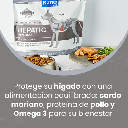 Kanu Vet Hepatic es un alimento veterinario formulado específicamente para perros adultos de todas las razas que requieren cuidados hepáticos adicionales. Este alimento se destaca por su fórmula única, que incluye pollo deshidratado y cardo mariano, un ingrediente reconocido por sus beneficios para la salud hepática.