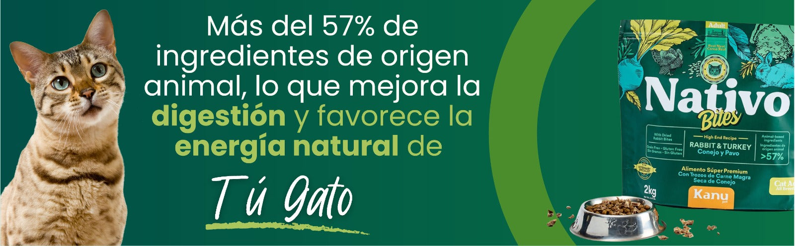 Alimento Seco Nativo Bites Conejo y Pavo de Kanu Pet para Gato Adulto es un alimento súper premium con un delicioso sabor a conejo y pavo, rico en proteínas animales de alta calidad.