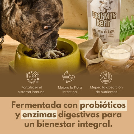 Goat Milk Kefir de Kanu Pet es un suplemento alimenticio premium diseñado para perros y gatos, adecuado para el uso diario. Este producto está elaborado con leche de cabra fermentada naturalmente, combinada con probióticos activos y enzimas digestivas que promueven una flora bacteriana saludable.