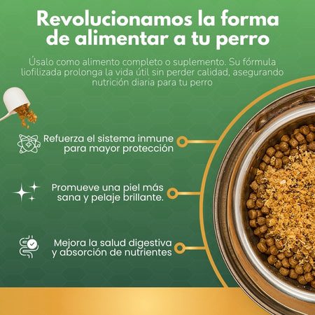 Este topper no solo mejora el sabor y la textura de la comida, sino que también apoya la salud digestiva, la energía y el bienestar general de tu perro, promoviendo un estilo de vida activo y saludable. ¡Agrega un toque delicioso y nutritivo a la comida de tu mascota con K-Booster!