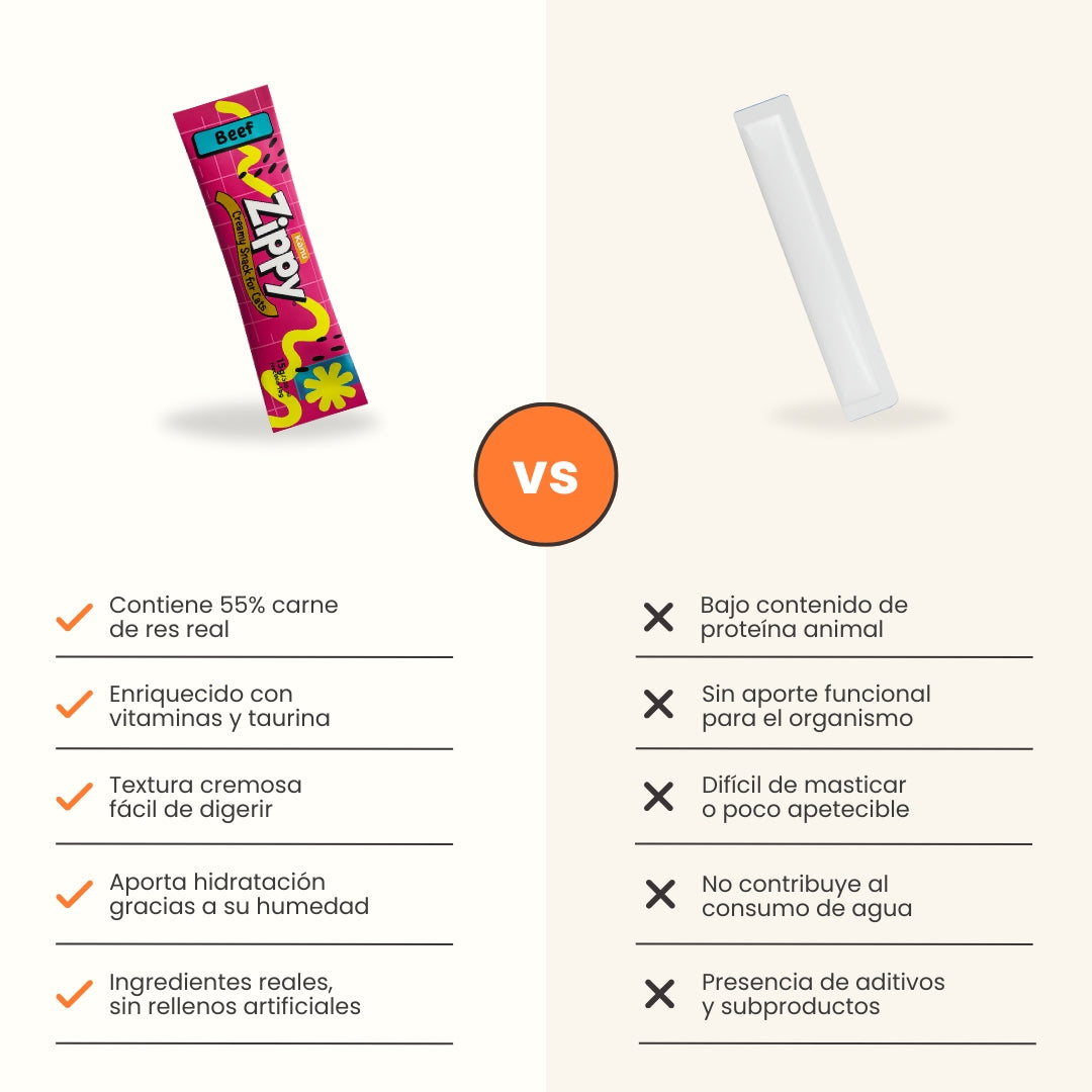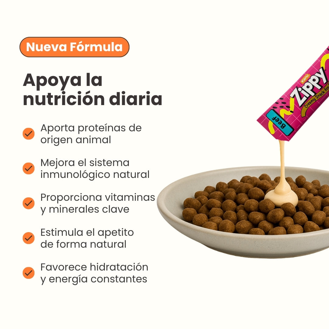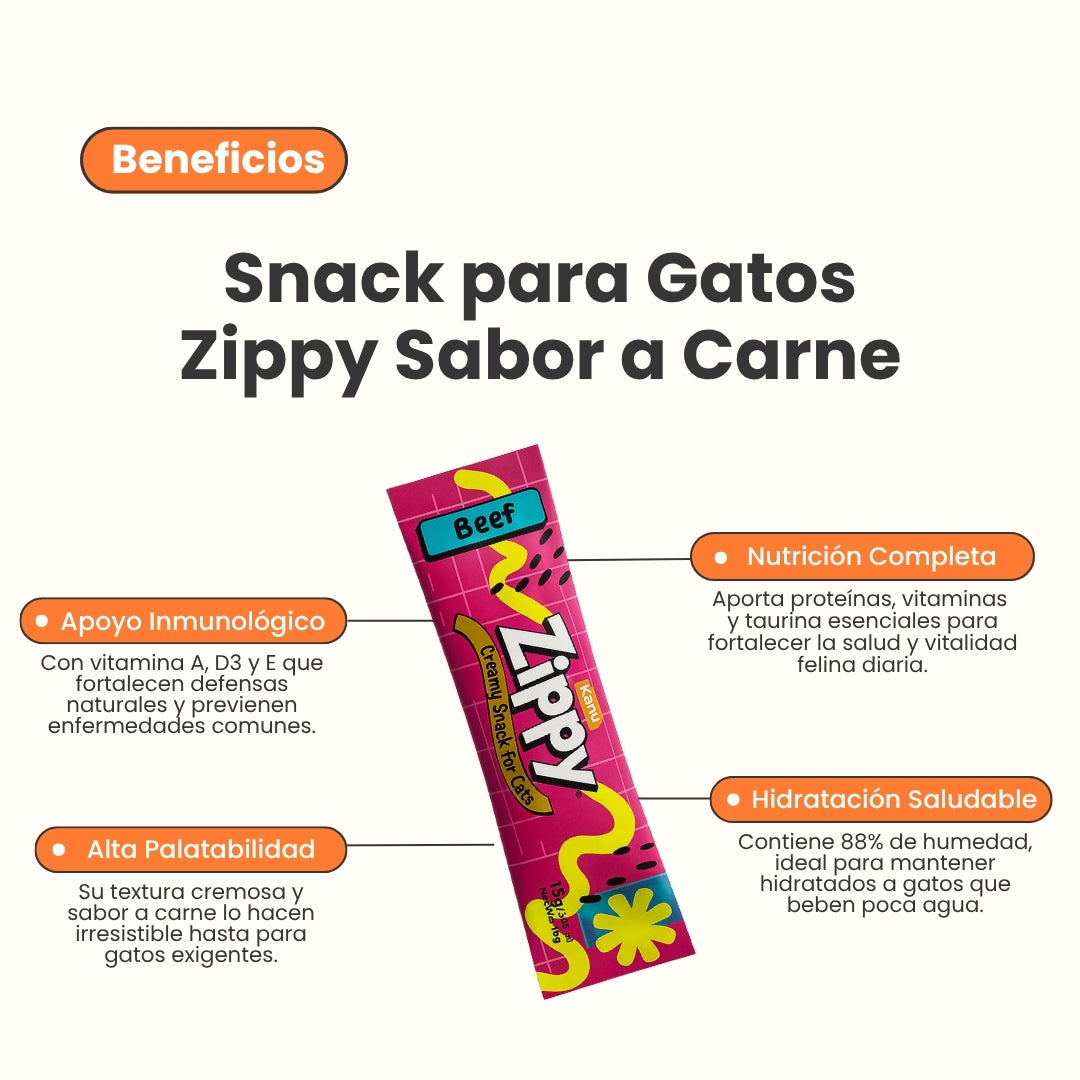 Gracias a su formato en sobres individuales, es práctico para usar en casa o fuera de ella. Un snack funcional para gatos sabor res, perfecto para consentir, premiar o complementar la dieta diaria de tu felino con un toque nutritivo y delicioso.