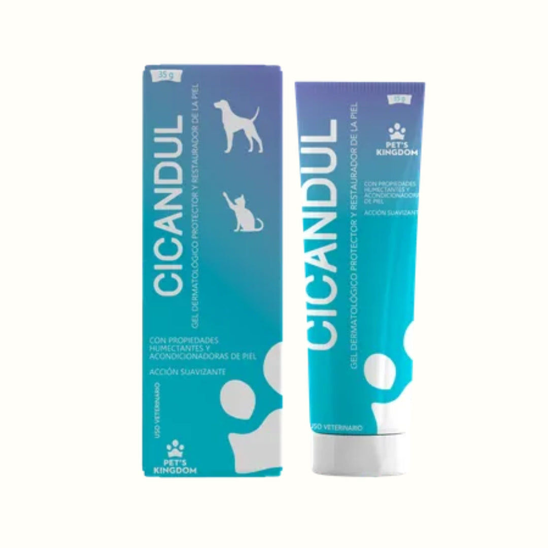 Limpiar la zona afectada con agua tibia o suero fisiológico y secar cuidadosamente. Aplicar una capa fina de Cicandul sobre la piel lesionada. Masajear suavemente hasta que se absorba. Repetir la aplicación 2 a 3 veces al día o según indicaciones del veterinario. Mantener el tubo bien cerrado. Solo uso externo. Evitar contacto con ojos o mucosas; si ocurre, enjuagar con abundante agua limpia. Suspender el uso si hay signos de irritación mayor o reacción alérgica.